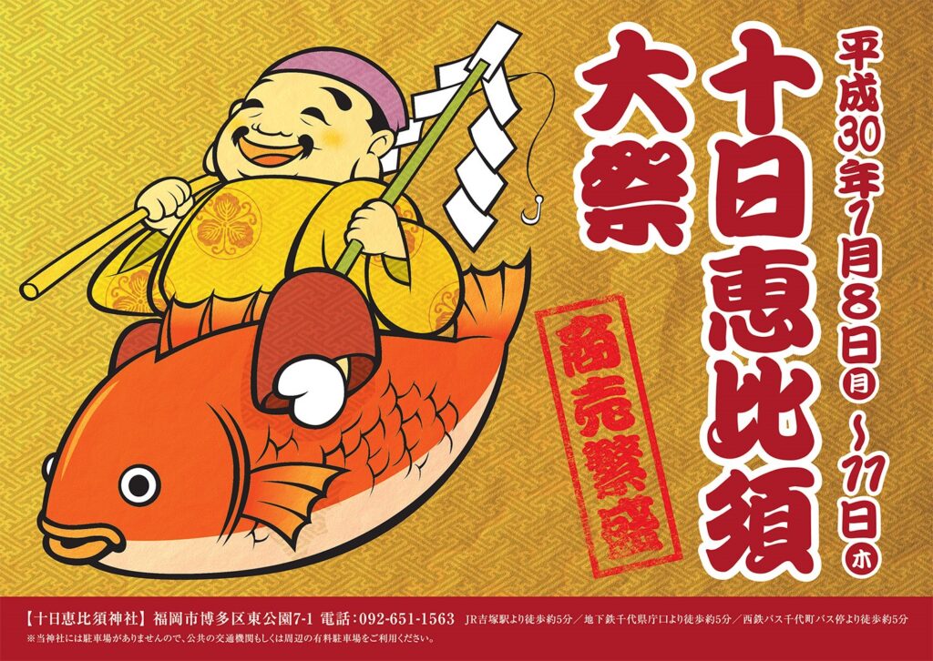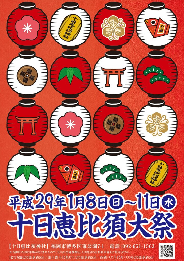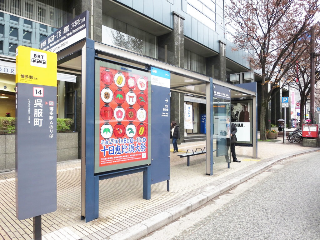 博多駅や福岡各所のバス停など、全部で143か所にポスターを掲示し、福岡の一大伝統行事である「十日恵比須大祭」の盛り上がりに貢献しました。
